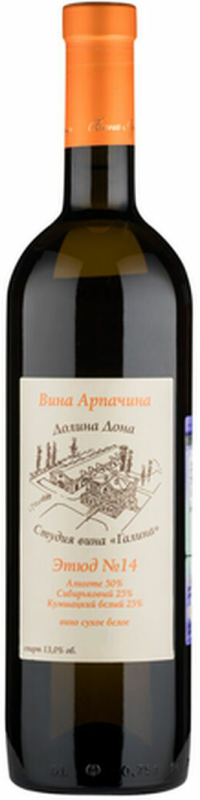 Вина Арпачина, Этюд №14 Оранж — пикантное и изысканное оранжевое вино из винограда сортов Алиготе, Сибирьковый и Кумшацкий, который выращивается на собственных виноградниках компании. Уникальная особенность производства этого вина заключается в "красной" винификации. Это значит, что виноград винифицируется в контакте с мезгой на протяжении длительного времени без доступа кислорода. Таким образом классическое белое вино получает оранжевый оттенок и характерную для красных вин терпкость. Перед бутилированием вино непродолжительное время созревает в большой дубовой бочке с доньями из акации.