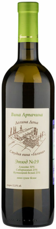 Вина Арпачина, Этюд №19 — освежающее белое сухое вино из винограда сортов Алиготе, Сибирьковый и Кумшацкий, который выращивается на собственных виноградниках компании. Традиционные методы производства, включающие строгий контроль температуры брожения и использование стальных ферментеров, позволяют создать питкое и гастрономичное вино.