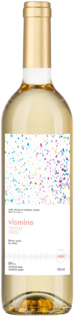"Vismino" Tsitska — белое сухое вино из винограда сорта Цицка. На этикетке "изображена" композиция Фредерика Шопена "Вальс №1".