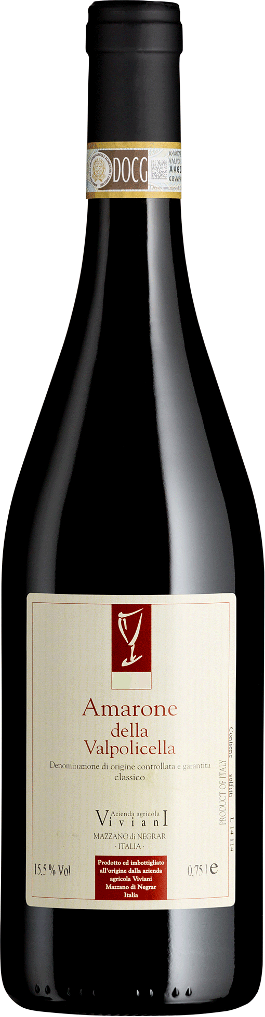 Viviani, Amarone della Valpolicella Classico — великолепное классическое вино практически ручной работы. Оно изготовлено из самого лучшего органического винограда, который собирают вручную на холмах с лоз возрастом от 10 до 80 лет, высаженных на известковой почве с окаменелыми розовыми кораллами, на второй неделе октября. После сбора виноград тщательно сортируют и подвяливают в течение 5 месяцев. Винификация начинается весной: после легкого отжима ягод производится мацерация и спонтанная ферментация в оцинкованных цементных емкостях в течение 40 дней. После этого вино выдерживают в бочках из французского и славонского дуба разных размеров на протяжении более 3-х лет