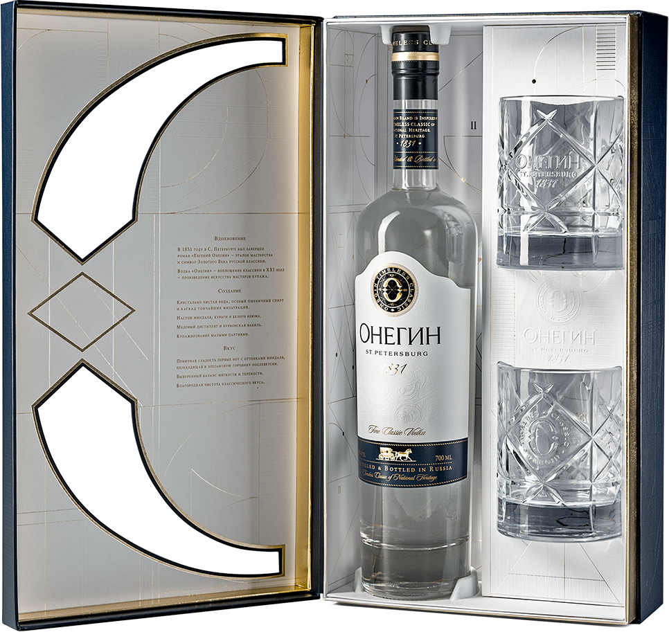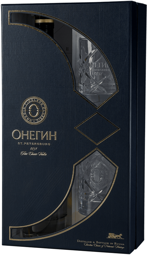Vodka Onegin 1831, gift set with 2 glasses, in gift box