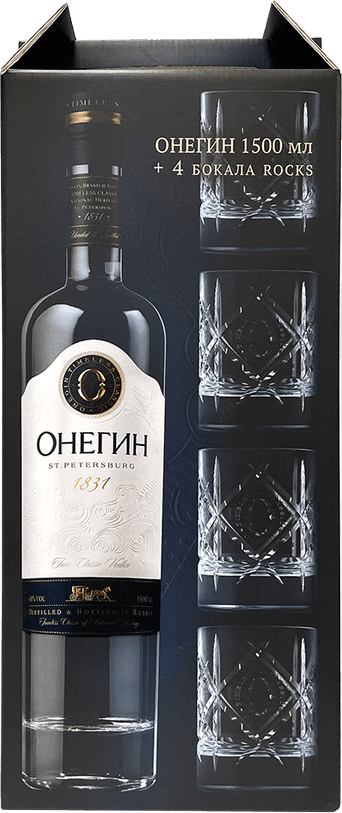 Vodka Onegin 1831, gift set with 4 glasses, in gift box