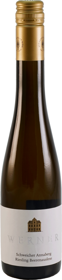 Weingut Werner & Sohn, Schweicher Annaberg, Riesling Beerenauslese — белое сладкое вино, настоящий эликсир из винограда сорта Рислинг, который выращивается на винограднике "Schweicher Annaberg". Он имеет южную экспозицию и уникальный состав почв (горные породы древнего пермского периода в сочетании с красным сланцем и грауваккой), что позволяет получать вина одновременно сильные и утонченные, с выразительной минеральностью. Beerenauslese — это категория, которая на порядок выше Auslese. Обычно вина этой категории производят из винограда, пораженного благородной гнилью, ботритизированных ягод. На винодельне виноград подвергается традиционной винификации при контролируемой температуре. Вино прекрасно подойдет к соленым сырам, фуа-гра и сладким десертам. Также можно употреблять в качестве самостоятельного напитка.