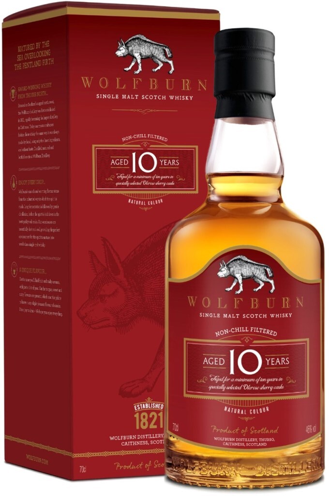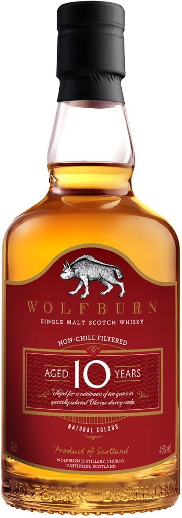 Односолодовый виски Wolfburn, 10 Years Old знаменует собой важную веху в истории винокурни. Дело в том, что это первый релиз Уолфбёрн, который стал постоянным с четко ограниченным сроком выдержки. Виски производится из отборного спирта и выдерживается в отобранных вручную бочках из-под хереса Олоросо второго наполнения. Десятилетие созревания в прямом контакте с духом испанского хереса и качественной древесиной привело к созданию восхитительно сладкого и роскошного виски — достойного свидетельства мастерства, преданности делу и терпения мастеров-дистилляторов Wolfburn. Розлив при крепости в 46% проводится без окрашивания карамелью и холодной фильтрации.