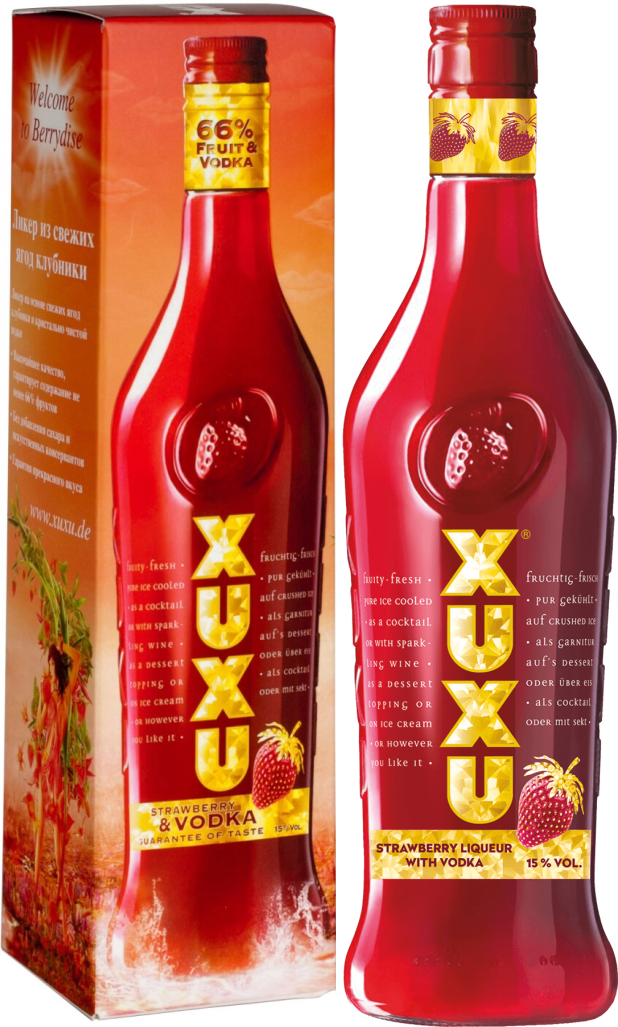 XuXu, Strawberry & Vodka — необычное сочетание сочной клубники, сока лайма и кристально чистой водки. Ликер создается из натуральных продуктов, без добавления сахара. Ликер можно подавать охлажденным в чистом виде, добавлять в коктейли, к мороженому и десертам.