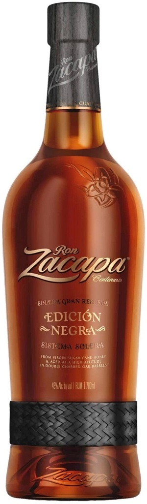 Zacapa, Solera Gran Reserva, Edicion Negra элитный, один из самых востребованных и популярных напитков в лиге ромов из Гватемалы, с повышенной крепостью (43%), - «великолепное черное чудо» в подарочной тубе. Перед нами ром, состоящий из нескольких спиртов, разного возраста, что касается точной рецептуры, то она содержится в строжайшем секрете, мы знаем лишь, что один из дистиллятов имеет выдержку в бочках из-под Хереса и Бурбона по методу «Солера» 23 года. Букет изысканный интенсивный с приятной сладостью, прекрасно звучат ноты дуба, также фруктов, слышны оттенки ванили, орехов, улавливаются нюансы миндаля, шоколада и приправ. Вкус сбалансированный с продолжительным теплым послевкусием.