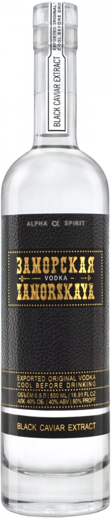Zamorskaya, Black — оригинальная водка, созданная для широкой аудитории. В ее производстве используется спирт класса "Альфа", чистейшая вода и экстракт черной икры. Водка является отличным аперитивом и дижестивом, подается к закускам, мясным и рыбным блюдам.