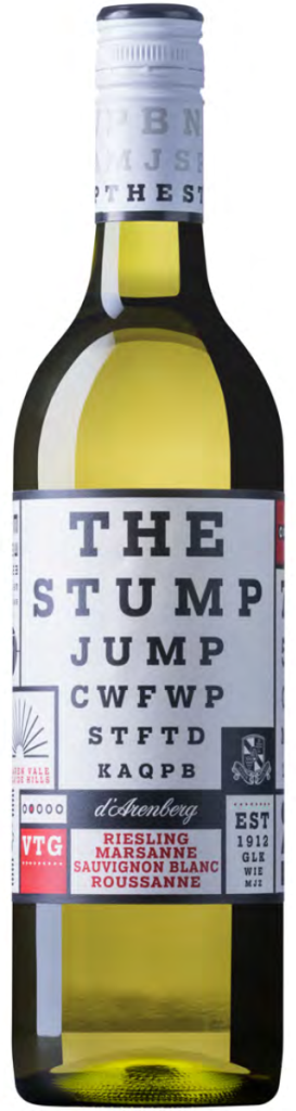 The Stump Jump, White представляет собой купаж четырех сортов белого винограда с преобладанием Рислинга, подобранных таким образом, чтобы получить изящное сбалансированное вино. Виноград для производства вина выращивается в Южной Австралии, Долине Макларен. Тщательно отобранные плоды предварительно измельчаются щадящим способом, затем проходят мягкое прессование. Полученный муст перемешивается с дрожжами и помещается в танкеры из нержавеющей стали, где он подвергается брожению при контролируемой температуре. После окончания ферментации, из каждого чана берется образец для тестирования вкусо-ароматических характеристик продукта и составления гармоничного бленда. Затем полученный купаж бутилируется и отправляется на "отдых" в погреба.